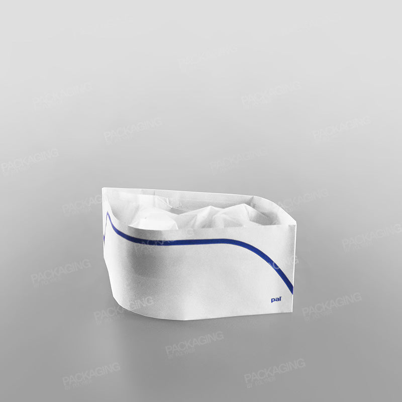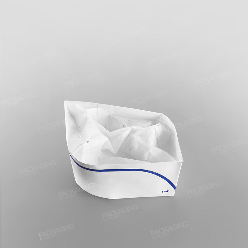 With its blue striped design on white embossed paper, the hat provides a professional appearance while keeping hair contained to prevent contamination. Air vents on top enhance ventilation, ensuring comfort during long shifts.