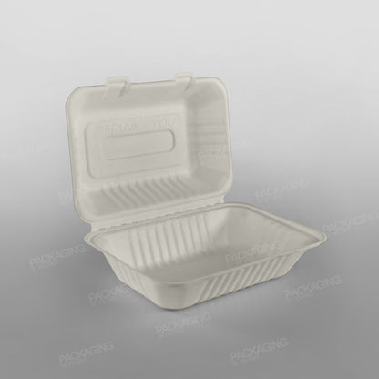 The clamshell design offers convenience for immediate consumption or for customers to take their meals to go. Ideal for restaurants, events, takeaways, deliveries, or travel, these lunch boxes provide a practical, eco-friendly solution.